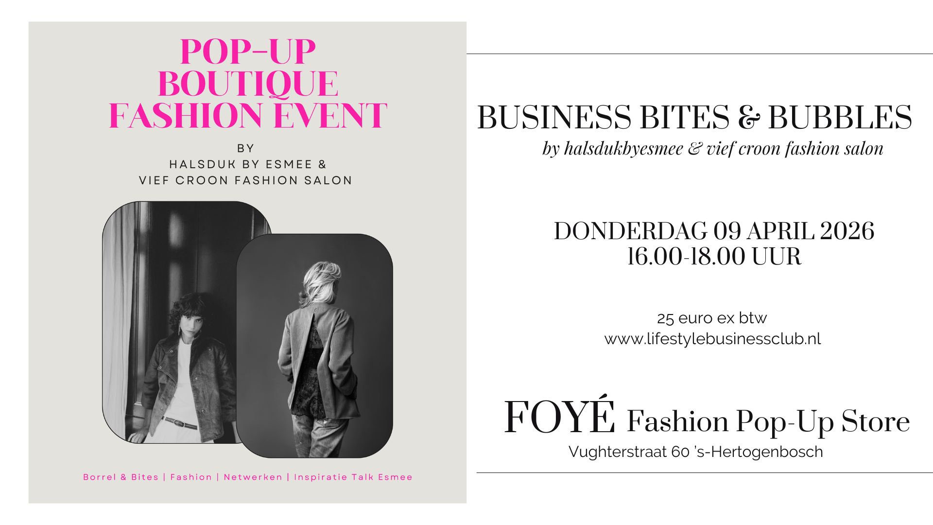 POP-UP BOUTIQUE FASHION EVENT Netwerken op een zojuist geopende, inspirerende plek, daar wil je toch bij zijn? Op donderdag 09 april komen wij voor ons netwerk event Bites & Bubbles […]
